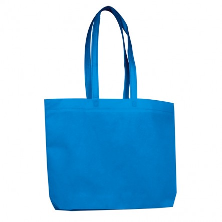 Non woven draagtassen zijn gemaakt van 80 grs. non woven. De kleur van het materiaal is aqua blauw.Deze tassen zijn uitgevoerd met twee extra lange non woven lussen, zodat de tassen gemakkelijk over de schouder gedragen kunnen worden. De draagtas van het formaat 38 x 42 cm. is een vlak model, het formaat 50 x 40 + 9 cm heeft een bodemvouw. Door de bodemvouw hebben deze draagtassen extra veel inhoud.