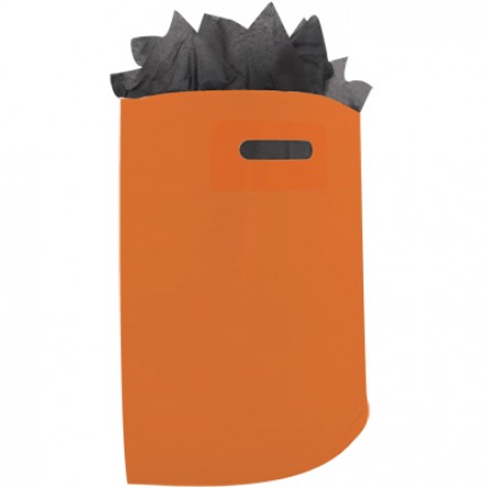 De draagtassen zonder bodembouw hebben GEEN versterkte handgreep Deze plastic tassen zijn gemaakt van 50 micron LDPE poly, wat zorgt voor een glanzende uitstraling. Het materiaal is oranje gekleurd.De bovenzijde van deze plastic tassen is voorzien van een uitgestanst handvat met een kleefblad versteviging voor extra stevigheid. De onderzijde is voorzien van een bodem welke uitklapt zodra de tas gevuld wordt.